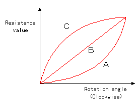 โวลุ่มท้ายC=Anti Logarithm เปลี่ยนค่าช่วงต้นน้อย ช่วงปลายมาก(ใช้งานเฉพาะแล้วแต่การดีไซน์วงจร)