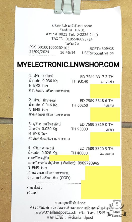 แจ้งส่งของวันที่26/09/2024คลิก…