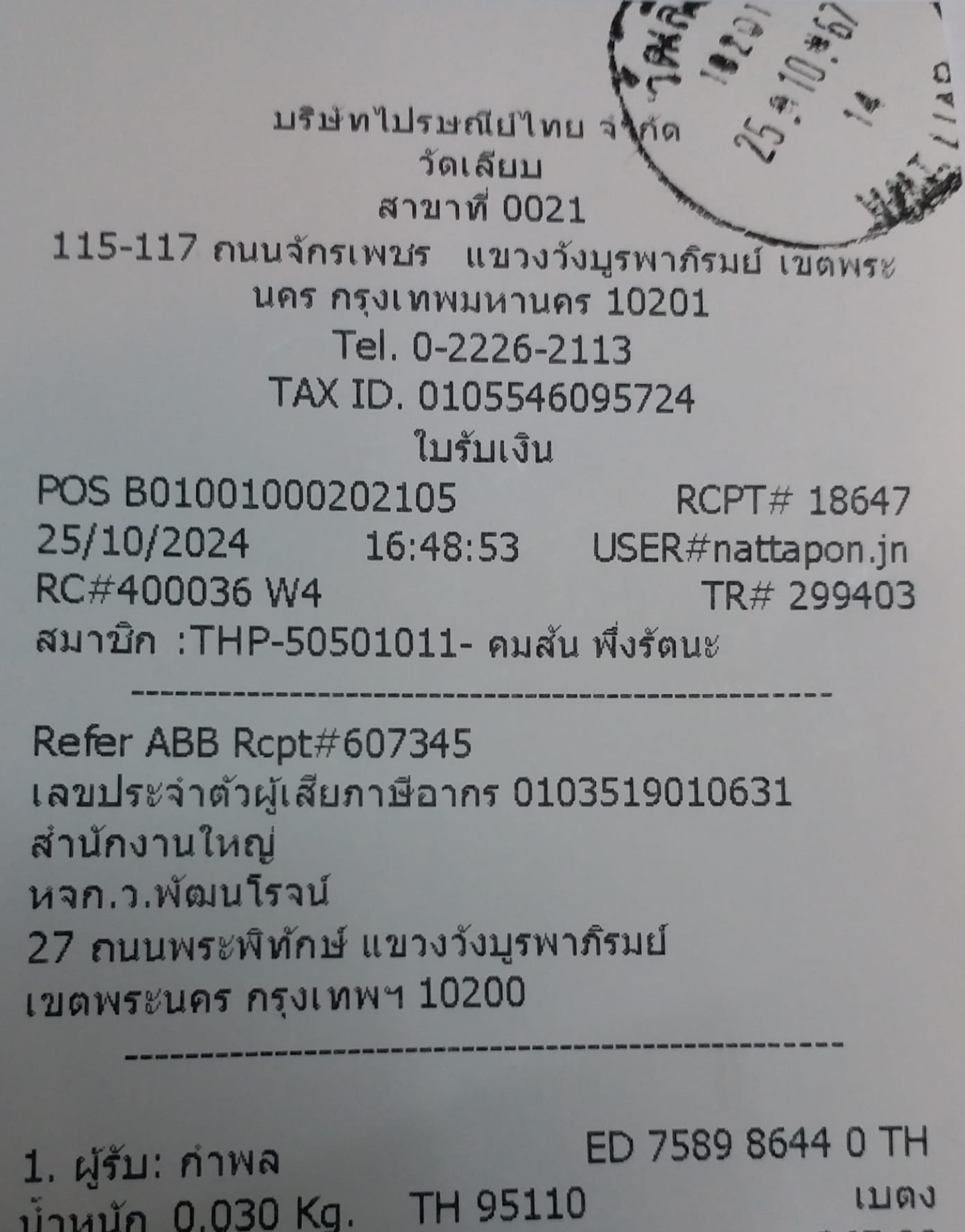 ใบส่งของวันที25/10/2024คลิกดูล…