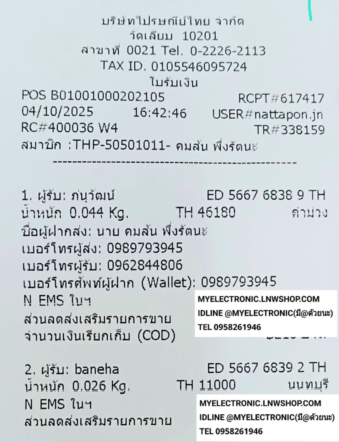 ใบส่งของวันที่04/10/2025คลิกดูลิ้งนี้