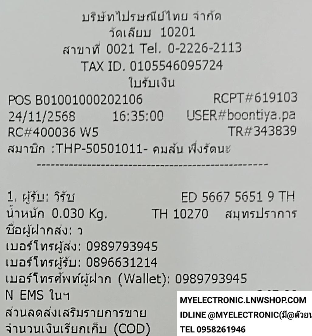 ใบส่งของวันที24/11/2025คลิกดูล…