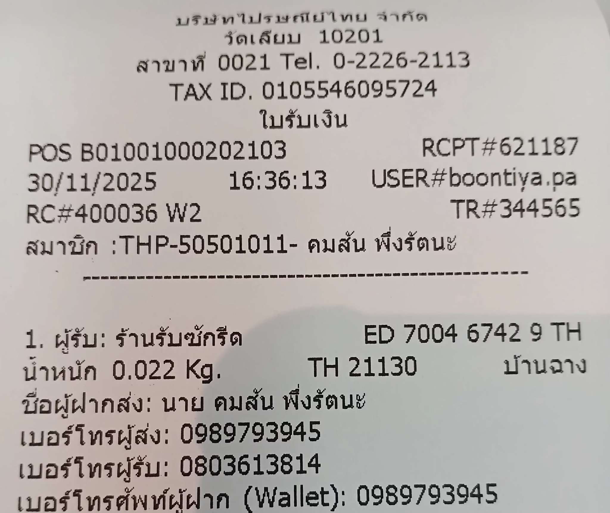 ใบส่งของวันที30/11/2025คลิกดูล…